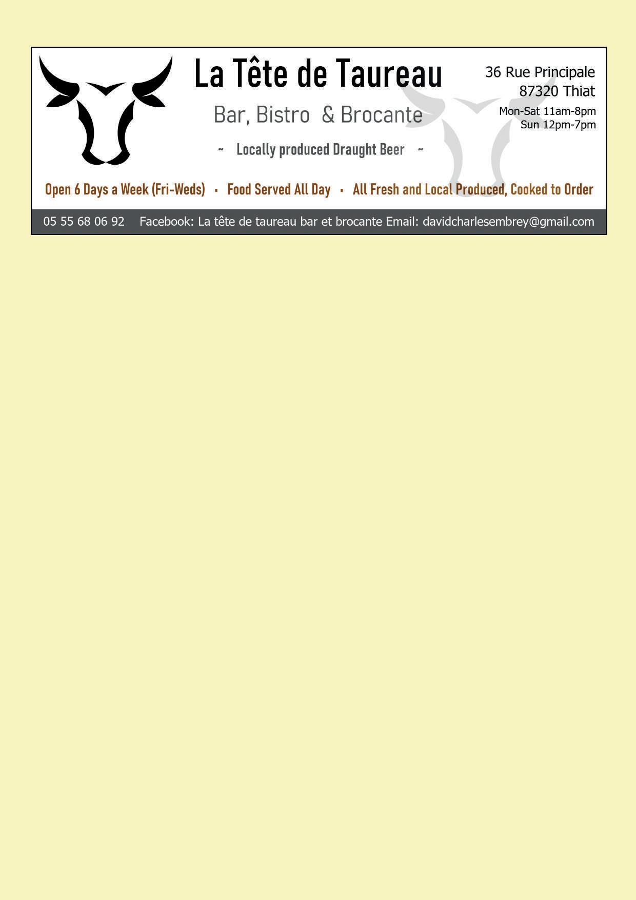 home & specialist etcetera 49 Contact Nick on email: nickthesweep@gmail.com or T. 05 45 71 33 36 Siret 81968203000013 ● Certificates issued for every sweep ● Over 10 years’ experience. ● Depts. 16, 17, 79, 86 ● Registered Chambre de Métiers et de l'Artisanat Chimney sweep Chimney sweep EI www.etceteraonline.org Advertise Your Business For as little as 35€ ttc Oven Cleaning Specialist Carpet/Rug & Upholstery Cleaning Using BIODEGRADABLE products Your oven will look shiny and new again Call Paula: 06 95 84 12 95 paulapowell@hotmail.co.uk www.facebook.com/foureclat PLUS Become a Subscriber Get your copy delivered to your door each month! 55€ per year Contact Sam or Gayle: editors.etcetera@gmail.com