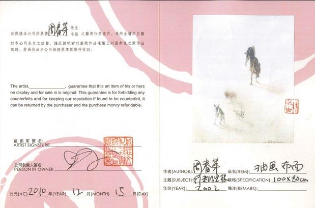 Article 12 Any representation or statement given by Our Company in the catalogue or in other forms as to the authorship, origin, age, size, medium, mount, attribution, authenticity, provenance, condition and estimated price is just for the information and reference of the buyer only. Our Company shall not be held responsible for errors.