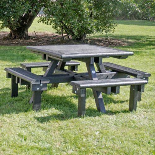 Woodberry source and supply wooden and recycled plastic picnic tables.