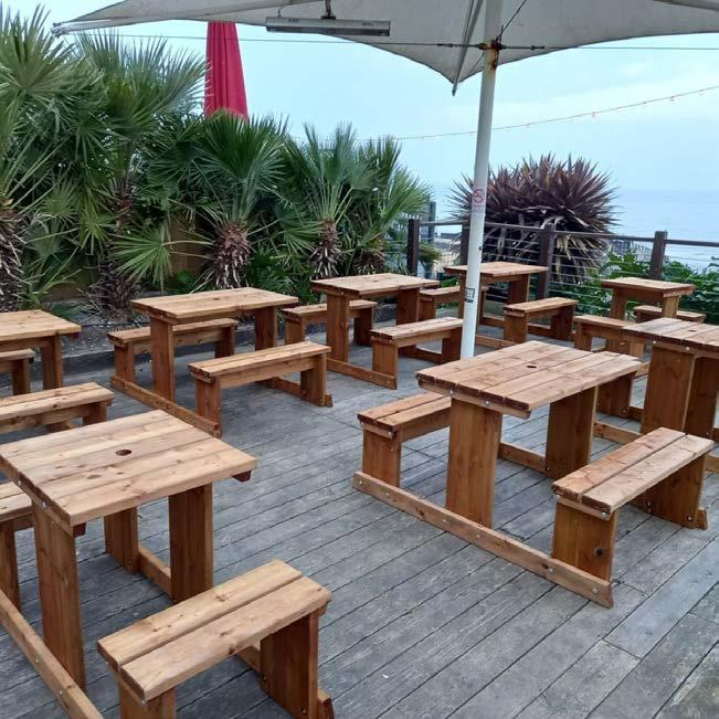 Wooden picnic tables will need more regular maintenance and wood preserve treatment in the salty, windy conditions. We can offer ground fixing kits if you are worried about furniture blowing over.