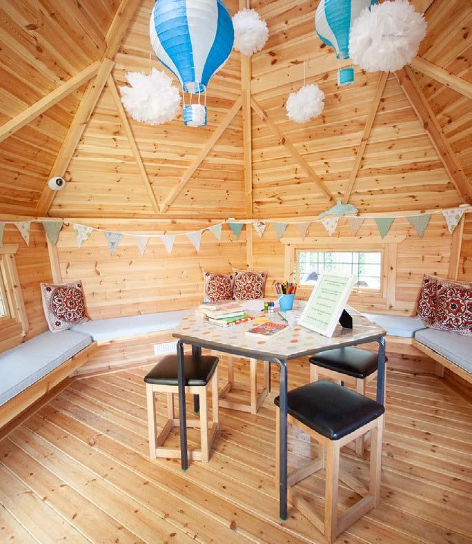 music rooms, and kids can be free to make as much noise as they need to show off their creativity, without bothering anyone in nearby classrooms! They are also perfect for sensory rooms, or SEND spaces, too. Children on the autism spectrum will appreciate the chance to relax in a soothing environment that can be filled with gently stimulating objects. The cosy, circular space in the log cabins lends itself brilliantly to creating a quiet, relaxed space. And the traditional layout of our Outdoor Classrooms gives that much needed extra wall space for themed activities and those beautiful childrens creations. You could also use one of these cabins as a peaceful reading nook, too, giving quieter children their own private hideaway to escape the rough and tumble of the playground and curl up on a beanbag with a book.