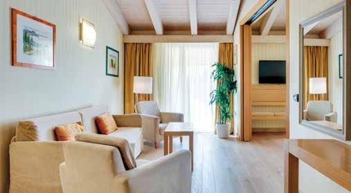 Bright and comfortable, all rooms are equipped with a wide range of amenities, including satellite TV, Wi-Fi, telephone, safe, minibar, and an electric kettle for tea and coffee. Suites offer an added touch of luxury, featuring a living room with a double sofa bed, a cosy sitting area with armchairs or a dining table, and a spacious furnished balcony or terrace. Bathrooms include a bathtub or shower, hair dryer, complimentary Caesius toiletries, and a wellness kit with soft bathrobes, pool towels, and a waterproof bag. For a truly restful sleep, the pillow menu offers a carefully curated selection of options, each designed to cater to different needs.