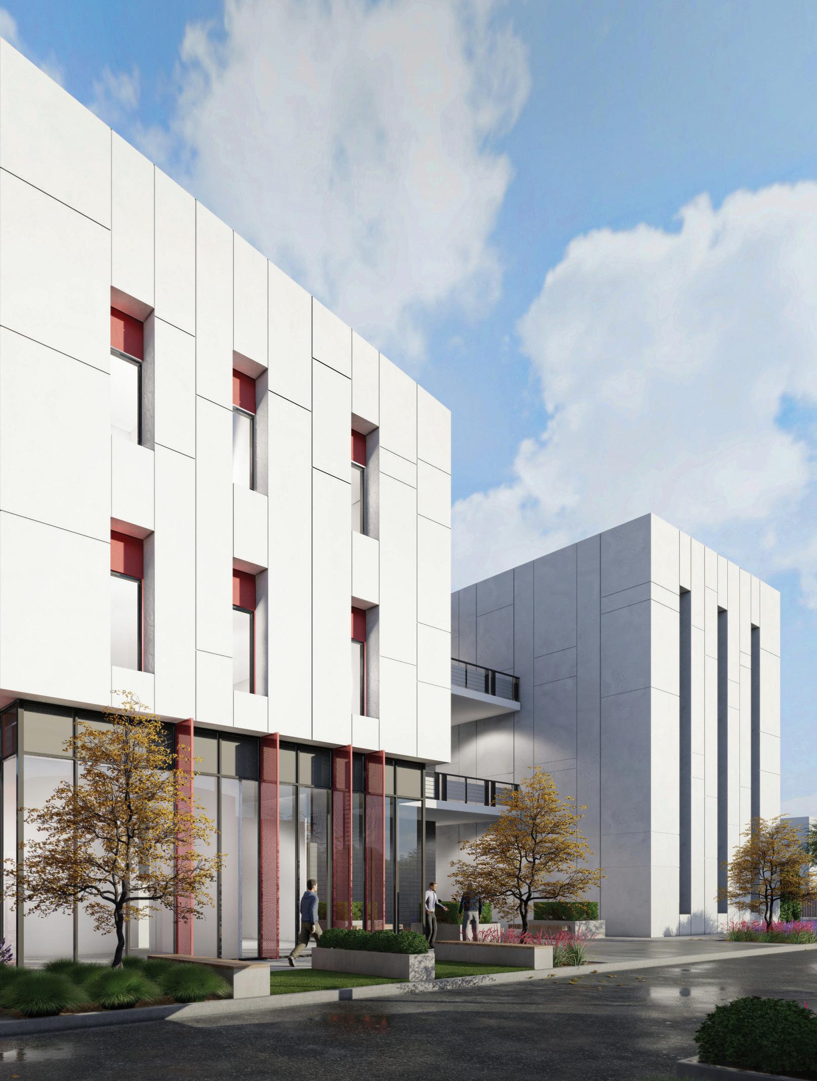 Over a two-hour lunch and tour, she was so impressed that she decided to stop the project and proceed under the sensory and cognitive consulting of Orfield Labs. The architect was told to follow our design lead and full consulting package on the exterior and interior of the building, so as with Western Homes, we consulted and designed on acoustics, AV, daylighting, lighting, thermal comfort, and indoor air quality. We also assisted in the design of a new façade that was far more subtle and far less threatening to the young clients. During this time, we hosted a visit from Dr.