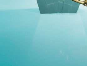CON ENFOQUE EN EL DESAYUNO DEL TECHO PENDEN CIENTOS DE CAJAS AZULES QUE EN CONJUNTO LOGRAN UN EFECTO VISUAL DE IMPACTO CONVIRTIÉNDOLAS EN UNA INSTALACIÓN ARTÍSTICA.