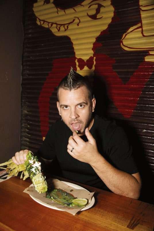 En portada: El chef español Dabiz Muñoz, con una camiseta de Adolfo Domínguez, disfruta algunos de los platillos insignia de El lagarto de oro, en Mérida.