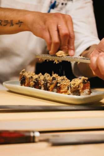 lleva a cabo en diferentes lugares de conflicto de todo el planeta a través de su ONG World Central Kitchen, conversa con personalidades y amigos sobre modelos de alimentación y procesos creativos, además de cuestiones más mundanas. En esta ocasión, George Russell, piloto oficial del equipo Mercedes-AMG Petronas del campeonato del Mundo de Fórmula 1, departió durante cerca de una hora con el cocinero español antes de invitar a los presentes a continuar con sus agendas. En la nuestra, una de las citas más solicitadas de Cayman Cookout: el duelo olfativo que enfrentó a los sommeliers Michael Kennedy y Aldo Sohm, gurú en Le Bernardin de Éric Ripert. Una cena de cinco tiempos elaborada por cinco cocineros (Gerard Bertholon, tarta de langosta de Maine con caviar Ossetra; Philippe Haddad, ballotine de rape con mousse de vieiras, lemongrass y leche de coco; Bernard Guillas, pechuga de pato con puré de castañas, rebozuelos, crujiente de manzana y reducción de cacao al Oporto; Frederic Marineau, soufflé de queso azul, galletas de lavash, y vinagreta de Oporto y pasas, y Fabrice Luinchard, emulsión de arroz con higos y hojaldre de arroz caramelizado) acompañada por dos vinos (secretos) elegidos por ambos a los que, tras cada plato, el público premiaba con sus votos. Una aproximación a dos de los paladares más exigentes del mundo, además de un necesario aprendizaje para afrontar el siguiente examen del fin de semana: los sabores de Japón elaborados y maridados con diferentes sakes por el