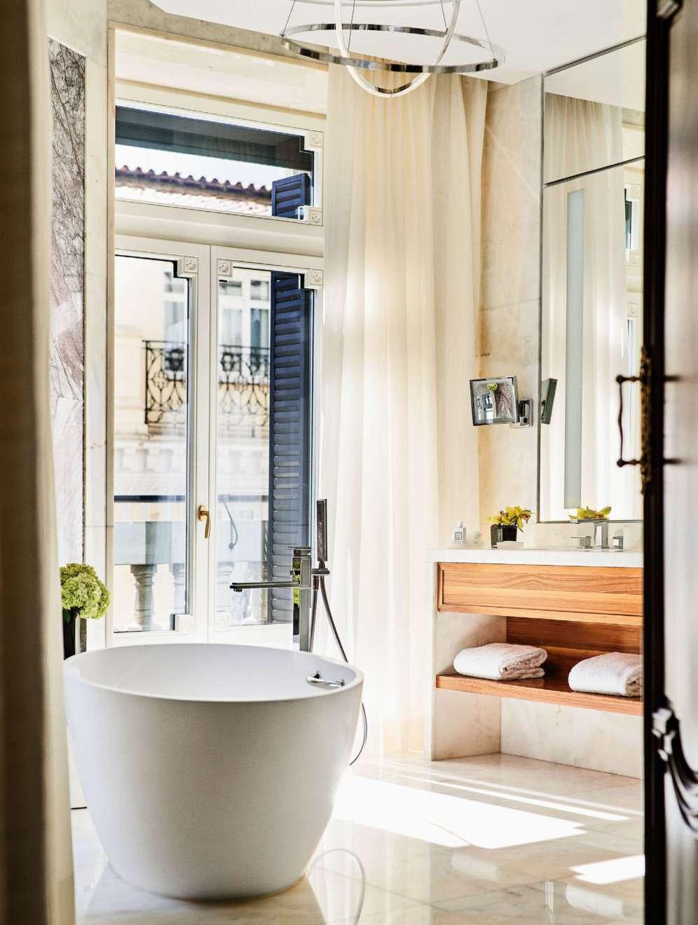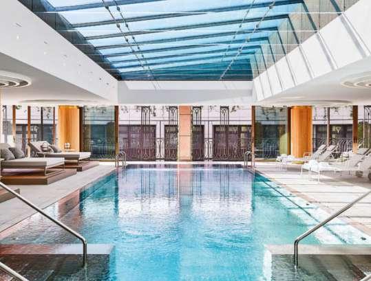 Un hotel esplendoroso, lujoso y clásico que siempre se ha reconocido como un referente de la capital francesa. Aquí, tienes que escoger una de las habitaciones que mira hacia la torre Eiffel, disfrutar de la piscina con aires de barco antiguo y desayunar lentamente en vajilla de Limoges Raynaud, cubiertos Christoffle y comer un croissant maravilloso en medio de la elegancia del salón del Epicure. Las bicicletas eléctricas son perfectas para darse una vuelta romántica por el Grand Palais y terminar en la torre Eiffel.