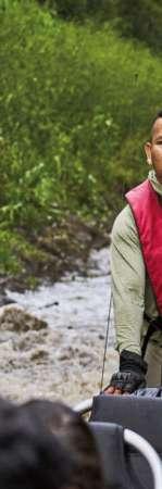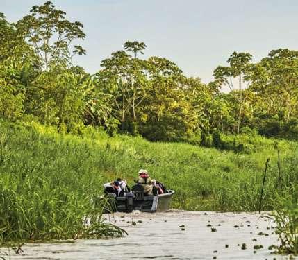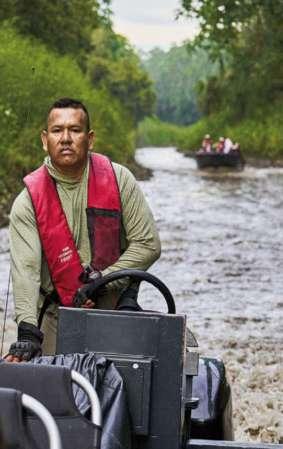 Para las expediciones, desde el barco acoderado, abordamos botes rápidos y muy maniobrables –skiffs– con capacidad para 12 pasajeros, en donde el guía –un profesional del lugar y del oficio– junto con un expe-