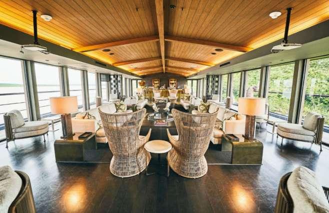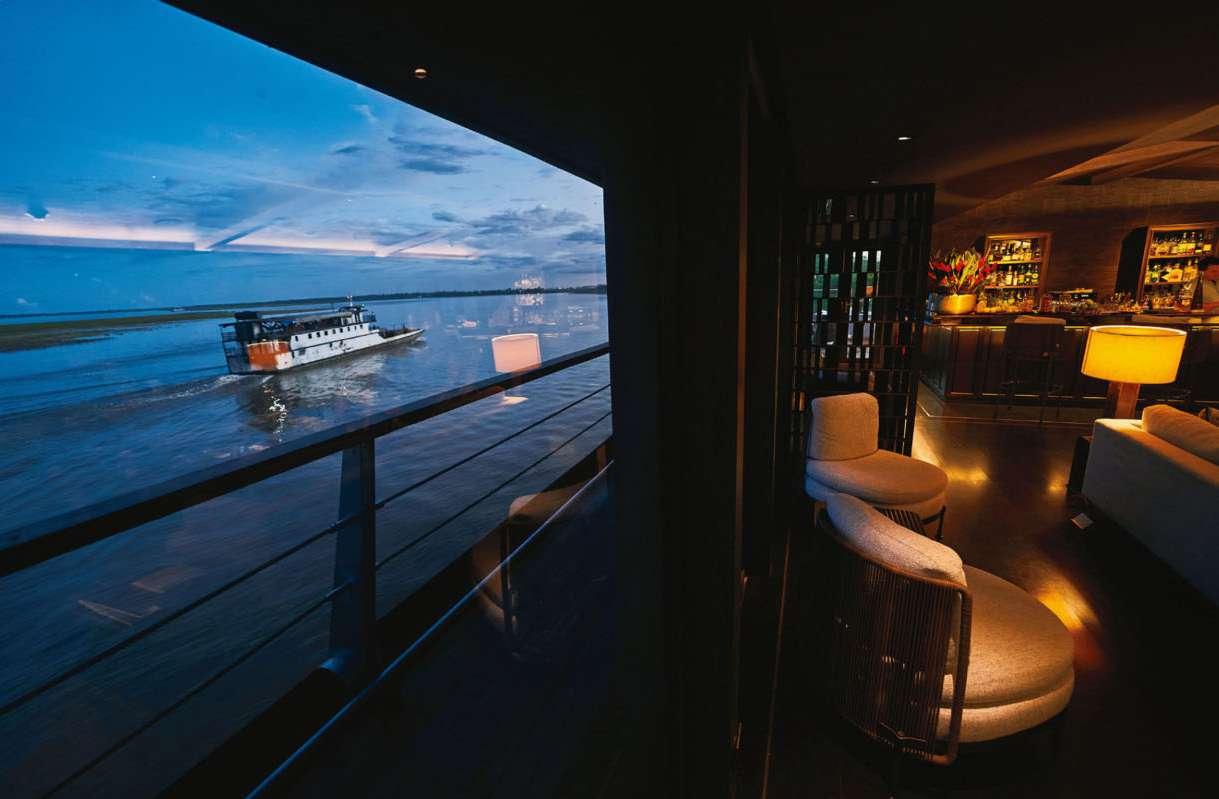 El diseño interior, a cargo de Noor Design, exclusiva firma vietnamita, sorprende a cualquier visitante por su lujo y practicidad. Si no es por el leve pero continuo vaivén y ver el pasar de la selva a través de sus ventanas, el pasajero no creería que está en un barco.