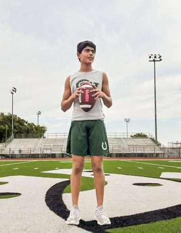 QUIJAS tiene 15 años y ha dejado México para perseguir un sueño enorme: ser quarterback en la NFL. De niño jugaba futbol y era bueno, pero el americano lo conquistó desde que escuchó a unos amigos hablar del deporte. “Le voy a los Colts desde que nací”, dice risueño… pero habla muy en serio. Al nacer, una cirugía con fórceps le fracturó el cráneo y le dejó una cicatriz con forma de herradura, el logotipo de su equipo favorito. Inició en Cimarrones, pero el equipo de sus amores fue Centurions de Querétaro.