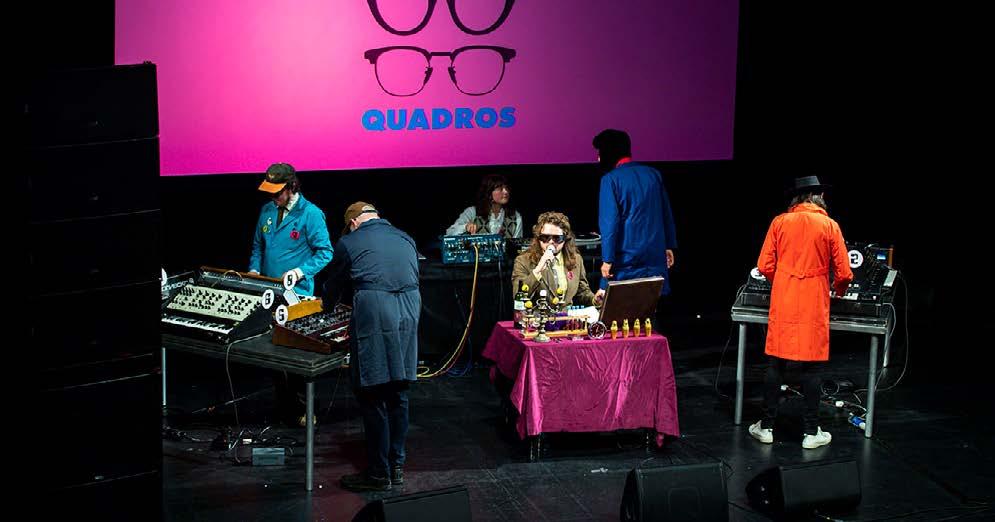 The festival finale was Quadros, the world premiere of a set of eight short electronic music pieces performed on a selection of vintage synthesisers (some of which even got a cheer when they were introduced) by four renowned synth players. All of this was curated by the master of ceremonies, Dimitri. What made it so unusual was that, with some help from the audience, Dimitri allocated the instruments randomly to the players. To demonstrate the uniqueness of each performance, they performed one track again as an encore, on a selection of different keyboards over a new rhythm track, and it sounded noticeably different.