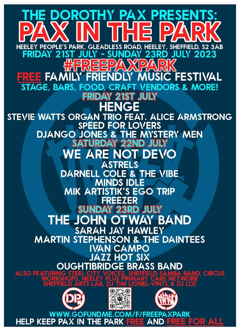 One of the city’s most popular fringe festivals, Pax in the Park, will be bringing another exciting collection of genre-crossing musicians and plentiful good vibes to Heeley People’s Park this year. Over the weekend you’ll be able to catch cosmic dross purveyors HENGE, cult rock n roll eccentric John Otway and swing/jazz aficianados the Jazz Hot Six – and that’s just a small taste of what you can experience across a packed lineup.