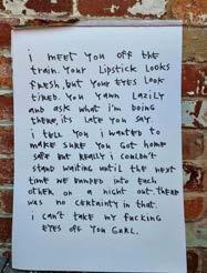 I think Nameless Nat’s’ stuff will fit well alongside mine. Her style is very different; she has an illustrative style with thick black lines and lots of prose. She draws her inspiration from a similar place, though, with references to working class culture and her upbringing in an area with high unemployment. Her poems are brilliant.