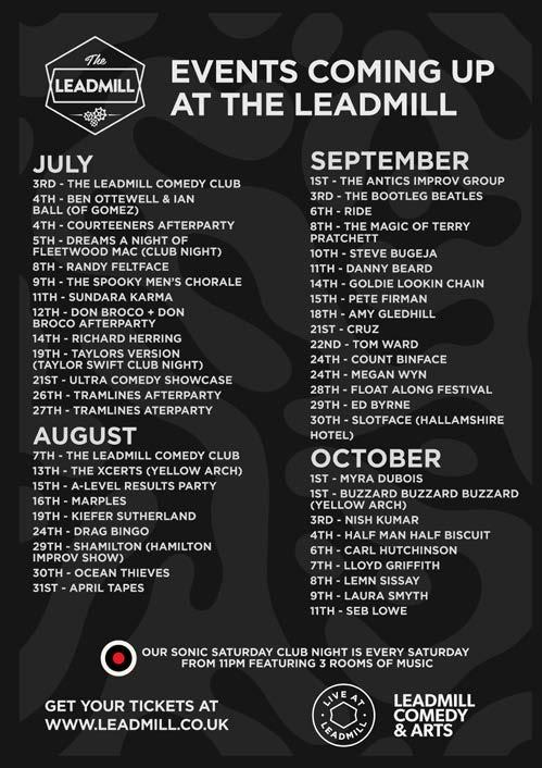 This year’s event will also provide a platform for small Hillsborough-based businesses to showcase their wares. Head to Little Hillsborough and you’ll find homemade items from Annie Jude’s, works from local artist Luke Horton and Michael LeCount’s Bricks and Bits shop, a haven for Lego enthusiasts. For the full lineup and ticket information, head to www.tramlines. org.uk.