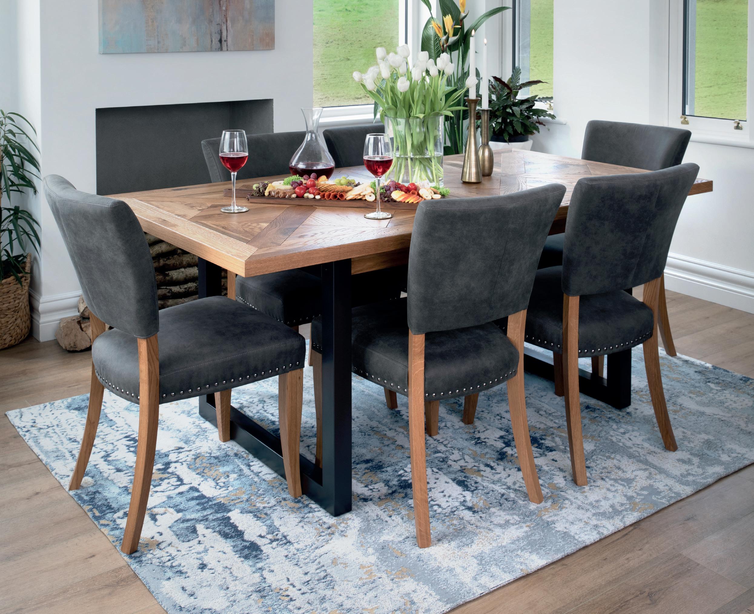 CALIA 1.6m Dining Table Now €899 Small Bench Now €419 | Small Ext. Leaf Now €219 | 2m Dining Table Now €1099 | Large Bench Now €519 | Large Ext. Leaf Now €259 Round Dining Table Now €799 MARLOW available in grey or beige fabric or navy, charcoal, pink or green velvet Dining Chair Now €249 €39 Premium Dining & Cabinet Care Kit Contains wood, glass and marble cleaner to remove dirt, grime and stains; fabric stain remover, leather 3-in-1 wipes and wood polish. 2 INDUS 4-6 Dining Table Now €1199 | 6-8 Large Dining Table Now €1299 | Circular Dining Table Now €999 | Dining Chair available in dark grey fabric or dark blue velvet Now €299 | Dining Chair Dark Grey Fabric Cantilever Frame Now €299