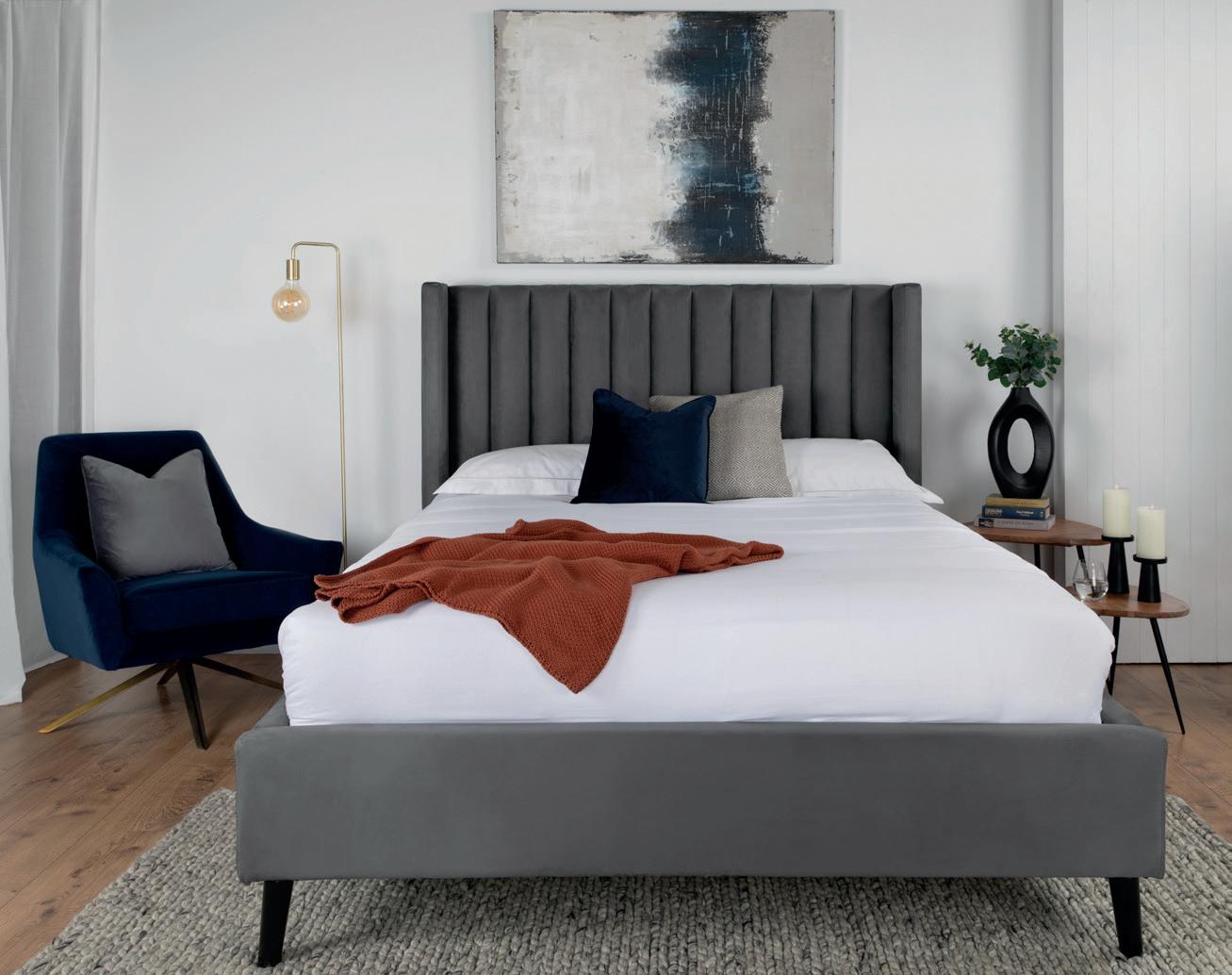 CREATE YOUR TRANQUIL SANCTUARY Soothe your senses every evening with our range of inspired bedroom furniture. From bedframes to wardrobes, our collections have every aesthetic in mind. 1. THEO available in charcoal or peacock 4’6” Bedframe Now €1049 5’ Bedframe Now €1099 6’ Bedframe Now €1299 2. EMBRACE available in rust, navy or dark grey 4’6” Bedframe Now €899 5’ Bedframe Now €949 6’ Bedframe Now €1049 1 2