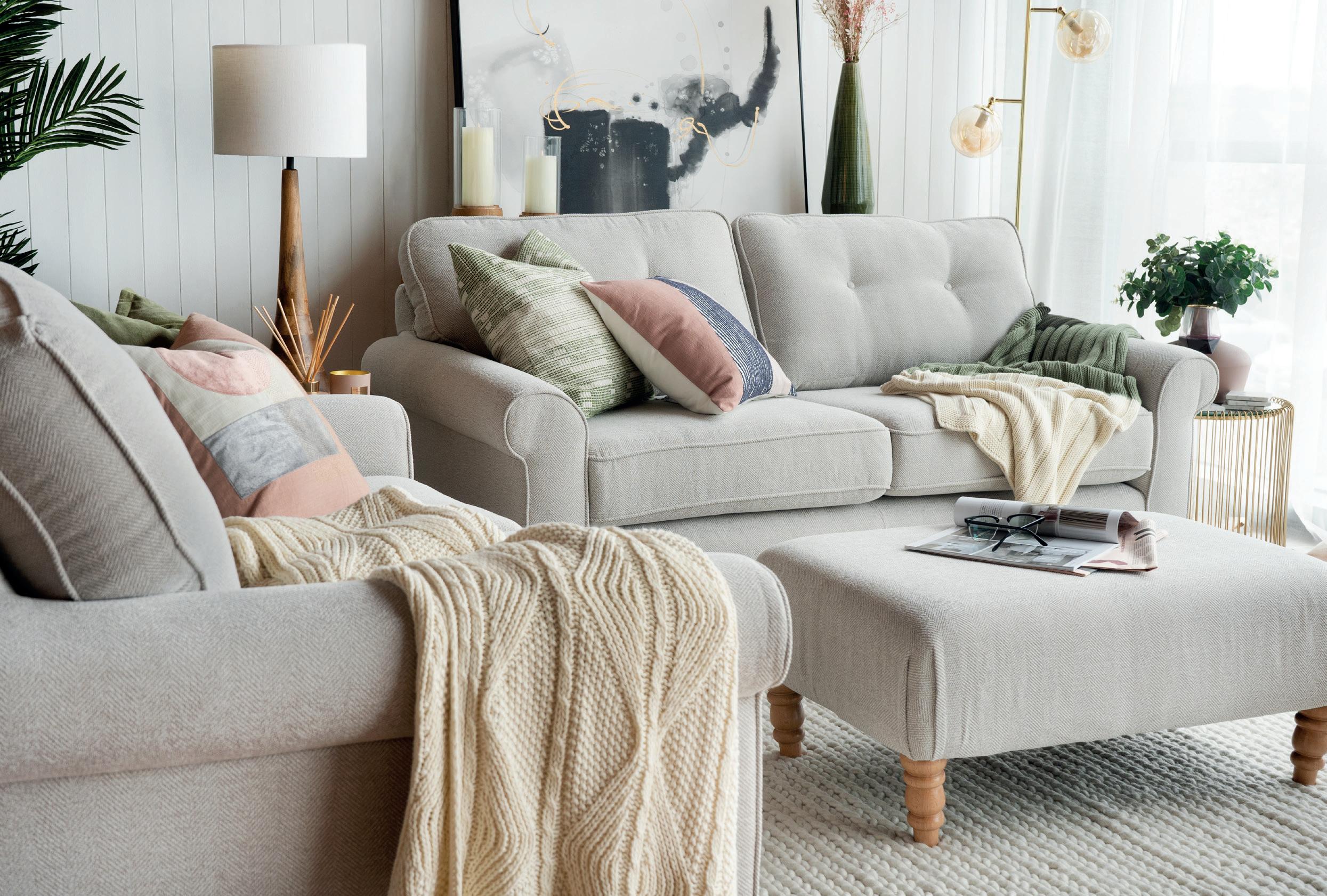 9 DELUXE FABRIC CARE KIT €39 This complete kit contains a Fabric Stain Remover, Cleaner and Deodoriser to keep your sofa looking sleek. COOPER Corner Now €1999 | 3 Seater Now €999 2 Seater Now €979 | Armchair Now €749 | Footstool Now €329 1. KENDAL available in dark grey fabric, charcoal velvet or navy velvet 3 Seater Now €799 | 2 Seater Now €779 | Armchair Now €649 Footstool Now €269 2. GREENWICH available in olive velvet or charcoal fabric 2.5 Seater Now €1099 | 2 Seater Now €1079 | 1.5 Seater Now €799 1 2