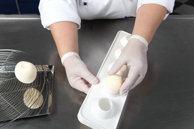 Leve as mono porções ao freezer e após ter reduzido a temperatura até -30°/-45°C, removê-las do molde e colocá-las sobre uma tela para glaçar.