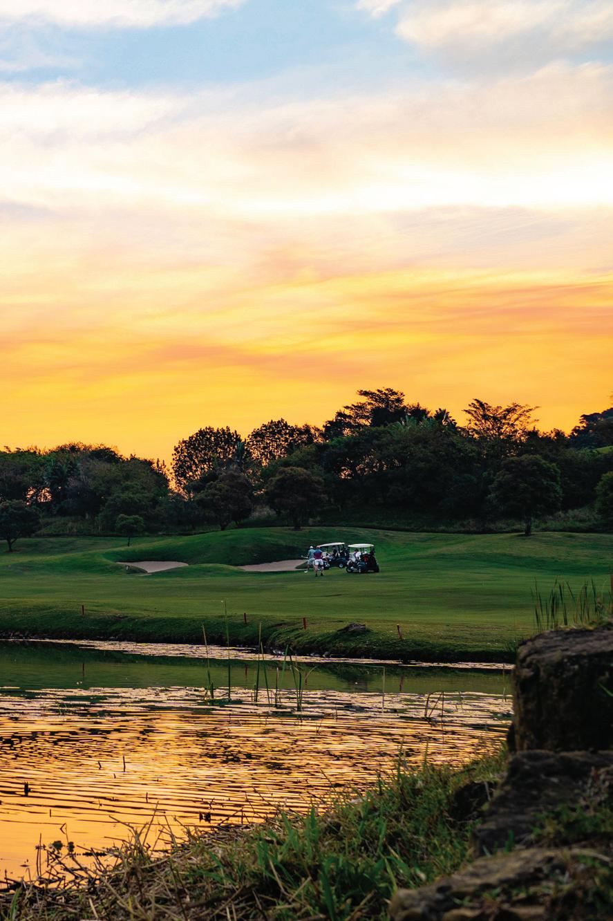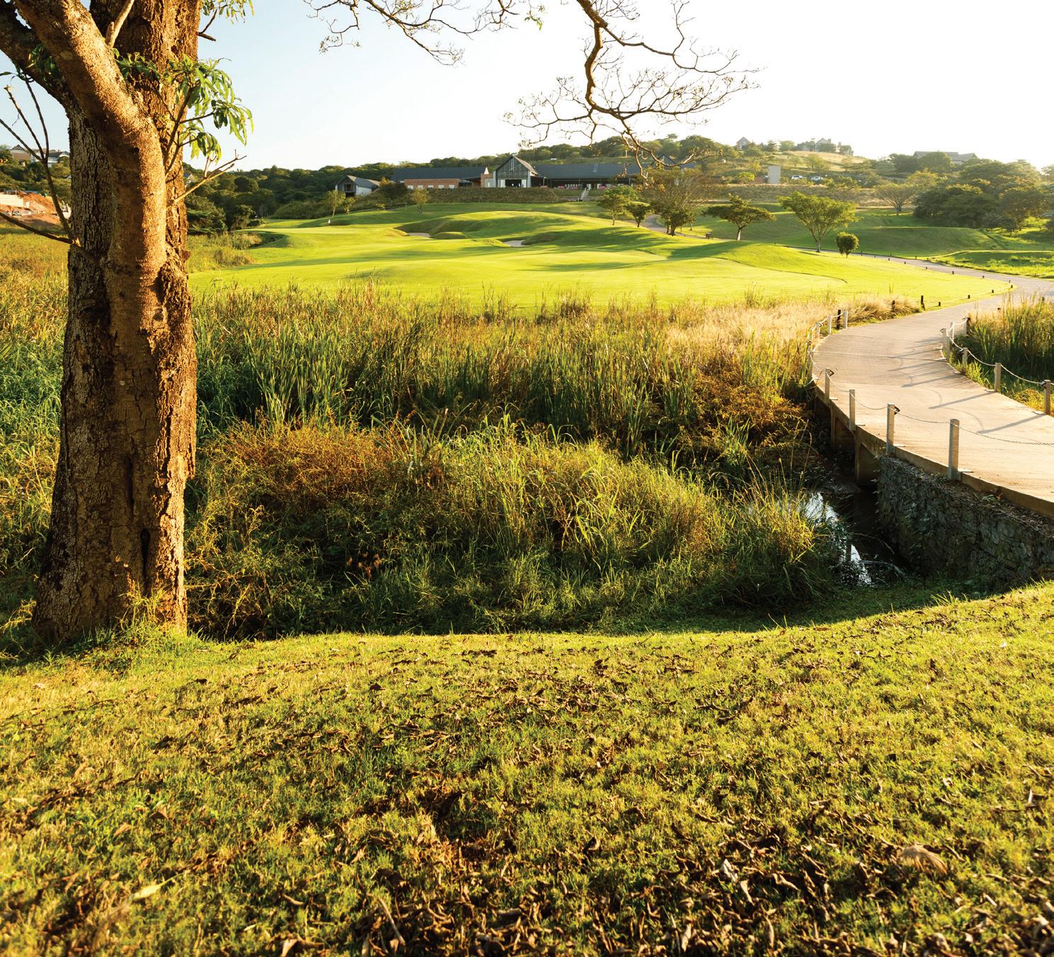 shady stretches of indigenous forest to open riverbanks, across tranquil dams, and even past panoramic viewpoints overlooking our championship golf course.