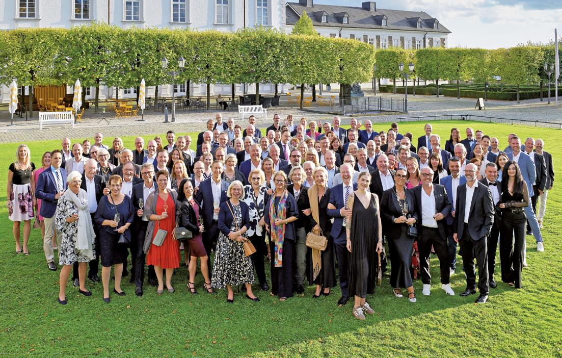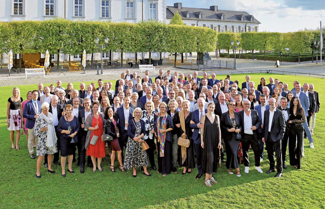 Gruppenbild vor imposanter Kulisse: Das Schloss Bensberg in Bergisch Gladbach war Schauplatz der Feierlichkeiten zum Firmen-Jubiläum.