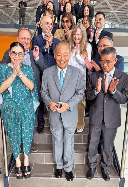 Strahlende Gesichter: Thapanee Kiatphaiboon (links, Gouverneurin Tourism Authority Thailand), Chalit Pukbhasuk (mitte) und Chalermchai Sitthisad (beide Mitglieder des Kronrats). In der dritten Reihe stehen Ergün Ersoy (Residence Manager Hotel und Toskana Therme) und Marion Schneider (Gesellschafterin der Toskanaworld AG).