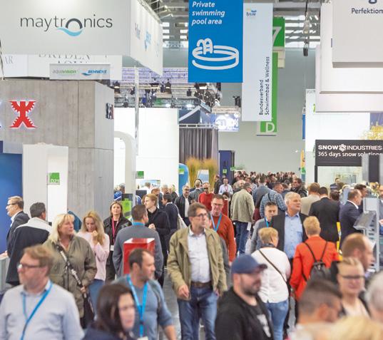 DasWarten hat ein Ende:Vom 28. bis zum 31. Oktober trifft sich die Brancheaufder„aquanale“inKöln.AuchdasTeamvon Schwimmbad+Sauna ist vor Ort – und zwar in Halle 7.1 am Gemeinschaftsstand D041/C040. 2025 stehen auf dem Messekalender außerdem noch die Ausstellungen „Alles für den Gast“ in Salzburg (8.-11. November) sowie die„Piscina Barcelona“ in Barcelona (17.-20. November). 2026 geht es dann weiter in Bologna auf dem „Forum Piscine“ (11.-13. Februar). Die „Pool + Garden Tulln“ im österreichischen Tulln folgt vom 19.-22. März 2026. www.aquanale.de, www.gastmesse.at, www.piscinabarcelona.es, www.forumpiscine.it, www.pool-garden.at