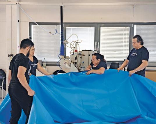 pool-Produktion. Hier gehört MTH zu nur sehr wenigen verbliebenen Unternehmen, welche beide Hauptkomponenten, also sowohl Stahlwand als auch Poolfolie, komplett in Eigenarbeit und in Deutschland anfertigen.