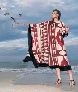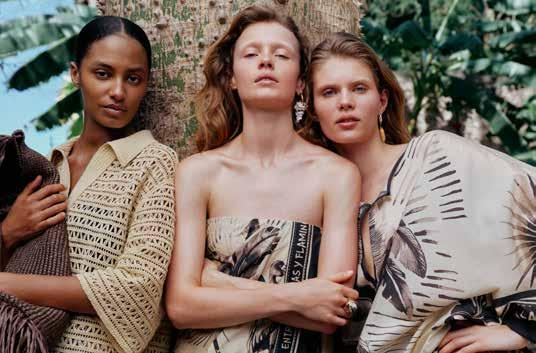 dress in bright red or golden yellow. The range of kaftans includes solid-coloured long-sleeved options with an embroidered front, wide-sleeved, voluminous versions in geometric prints and more. Swimwear, shoes and bags also bring in elements of craftsmanship and jewellery is ocean-inspired, with shells, coral and underwater creatures as the main motifs.