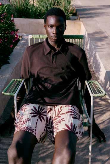 For guys, Mediterranean summers inspire a zipped structured knit, structured jersey polo, pleated linen trousers and short-sleeved shirts, combining soft tailoring and breezy comfort. The colour palette is refined with off-white, beige, brown and summer burgundy, evoking sunlit escapes and coastal charm.