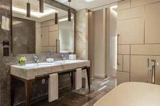 Anchoring Rosewood Doha’s vision of refined living are its residences – a refined collection of one-, two- and threebedroom homes that blur the boundaries between private living and elevated hospitality. Thoughtfully designed to evoke a sense of quiet sophistication, each space blends sustainable materials with curated art inspired by Qatar’s landscapes. The interiors reflect a modern aesthetic rooted in local heritage, with decorative details that echo the forms and colours of the desert and sea.