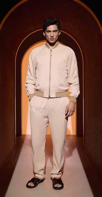 Comprising four women’s and three men’s looks, including accessories, the capsule draws on the notions of dawn and dusk. The colour palette ranges from delicate sky blue to sophisticated light sand. A kaftan and set of matching shirt and pants come in the blue for women; a set of shirt and shorts for more casual moments for men. In sand comes a maxi shirt dress and a second set of matching shirt and pants for women, while for men a bomber jacket and jogger pants are available in either chocolate or camel. ✤