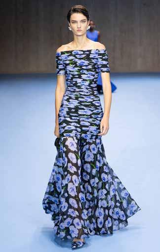 gown is a show-stopper with a sequence of little fans building a frock that embraces simplicity in its cut and complexity in its texture.