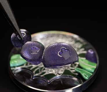 The berries sit within an ornate, round case edged with gold beads, accompanied by painted foliage against a textured gold background that forms a woodland scene. Adding to the narrative are two tiny fairies in sculpted gold, rose or white, whose diamond-set wings echo the brilliance of the gems surrounding the case. A closer look at the caseback reveals more details: a ladybird engraved for the Framboise model and a butterfly for the Myrtille. Materials differ subtly between the two watches. The Myrtille comes in a white gold case with hints of rose gold, featuring diamonds, enamel, miniature painting and a Swiss quartz movement. Meanwhile, the Framboise offers the same craft techniques in rose gold, complemented by touches of white gold. Behind these creations is the maison’s Geneva workshop, home to an enamel studio and training academy, where traditional techniques are preserved while innovations are developed. Sculpted and textured gold is used alongside enamel to add depth to the dials, with light playing across their surfaces, bringing a shift in reflections. The crafting of the golden fairies begins with a wax model, which is later shaped by hand using jewellery tools, many of which are fashioned by the artisans themselves. Once refined, the designs are moulded to ensure precision, then carefully engraved by hand again. The background gold is given a subtle texture, intensifying the interplay of light and shadow within the scene.