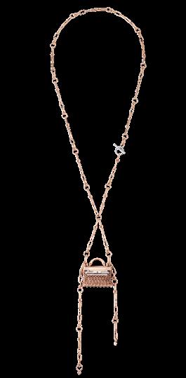 The complexity of this necklace evokes the silhouette of a skyscraper. However, looking closely at the clasp, you notice a beetle on it. The sparkling architecture, with its Art Deco take on geometry and symmetry, emerges from the beating wings of this majestic insect, drawing a slender, graphic shape in space with an array of details. Featuring onyx and diamonds, Cartier has turned this emblematic stylistic duo into a lovely surprise.