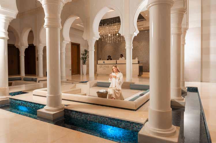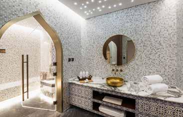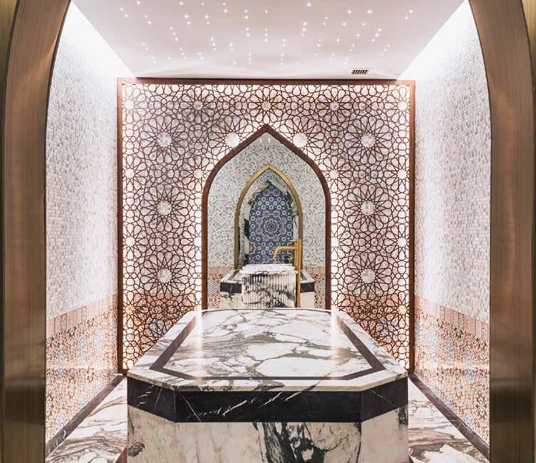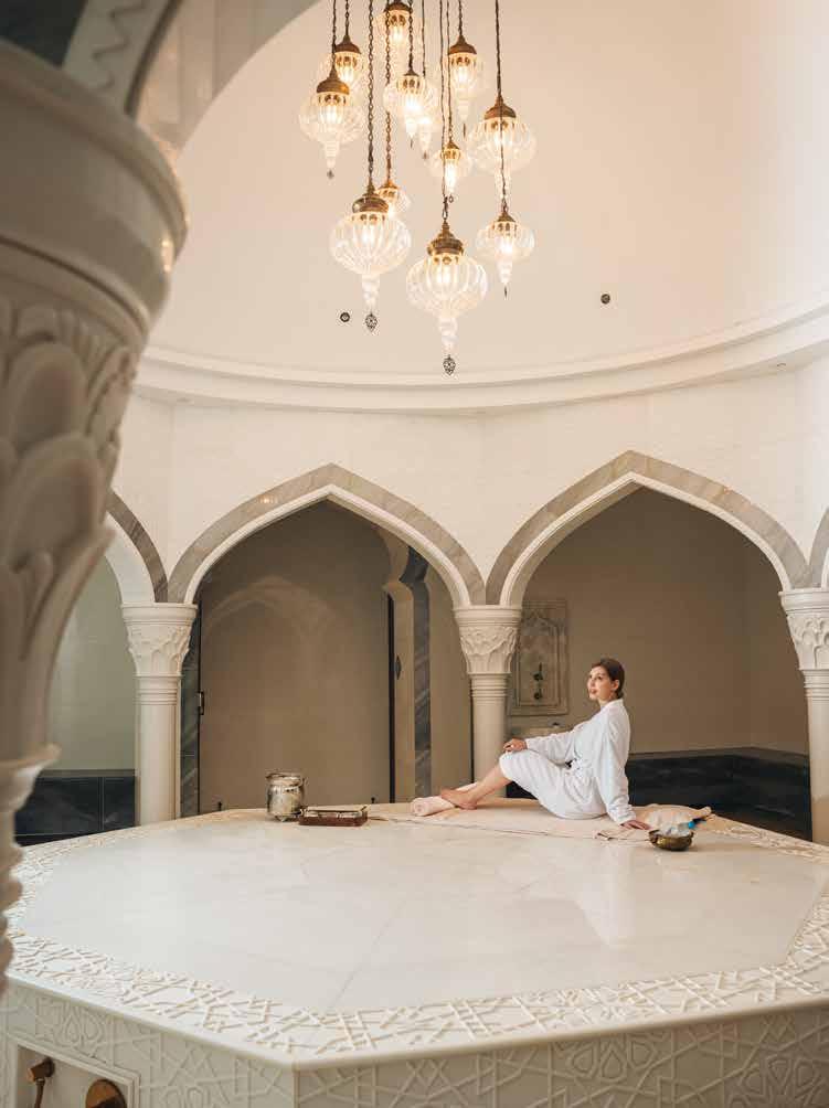 graceful arches, a domed ceiling and individual basins. Every detail is accented with rich shades of deep blue that add to the regal feel. I was ready to begin my Hammam ceremony, a beautifully choreographed ritual of cleansing and renewal, expertly performed by the skilled Subina.