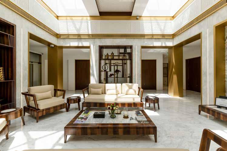 The Diplomatic Spa at The Diplomatic Club Doha is an excellent respite from the daily Doha bustle. As soon as I enter the club, I notice the skylight on the ceiling illuminates the entire space, as the marble floors and gold-accented interiors shine brightly. The intricate wall panels have delicate geometrical patterns, with wooden coffee tables adding more colour and texture. Every inch of this spa feels luxurious and elegant. Stepping in is a great feeling, and I am immediately greeted with a warm welcome.