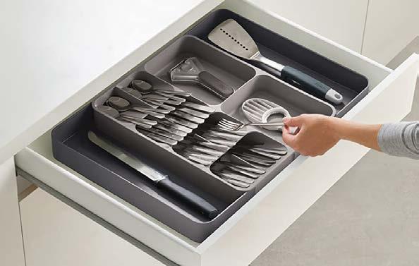 It sounds simple, and we’re all familiar with plastic cutlery inserts commonly available at your favourite DIY and homewares stores, but if you also happen to be familiar with the Joseph Joseph brand, you’ll know that they’re renowned for adding clever little details to items we take for granted. In this case, your knives, forks and spoons all have their own trays that overlap for a more effective use of space, and the outer trays slide in and out so that you can both adjust their size in relation to each other and make sure you fill the entire width of the drawer. No more losing teaspoons into the abyss...