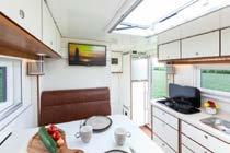 Picture yourself deploying the electric, automatic staircase to enter or pushing the soft-touch drawers, settling down surrounded by teak furniture, visiting the vacuum toilet when the other kind of nature calls or preparing a meal on a 3-ring hob set within mineral stone countertops once inside and you’re already half way to living life on the road in absolute luxury. Of course, there’s diesel heating and air conditioning, a choice of gas or electric hot water systems, satellite TV, and a monster 500 litre fresh water tank plus 250 litres of grey and 200 litres of black water storage to complement the monster 500 litre diesel tank that’ll enable you to roam far, far from civilization (and back to refill) for a considerable amount of time. Goodbye, daily grind - if you need me, I’ll be uncontactable. Especially if you’re calling from a credit card company.