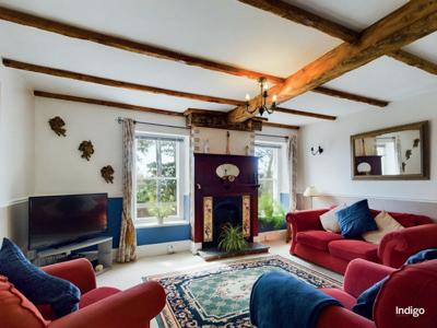 This Georgian five bedroom home has been recently refurbished. Occupying a private position surrounded by serene countryside, this would make a wonderful family home. The property is entered through a statement period porch where you are greeted by a bright entrance hallway with natural light flooding through large windows with stained-glass accents. There is an elegant kitchen, finished with bespoke fitted cabinetry and fully equipped with high end appliances. On the first floor, the principal