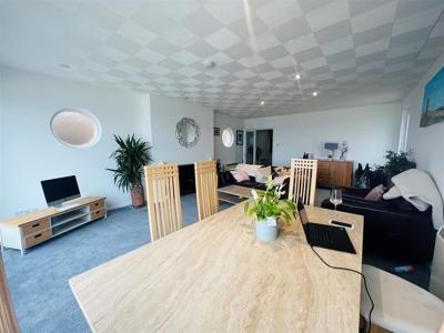 cupboards. Upstairs is the master bedroom suite with fitted wardrobe, a walk in cupboard, en-suite bathroom and a superb apex window providing plenty of light. The final double bedroom, served by the house shower room. A spiral staircase leads up to a roof terrace with sweeping views and is an ideal spot for sun worshippers or simply to escape and relax. Two large and secure private store rooms and two designated undercover parking spaces plus visitor parking complete this exceptional apartment which is in great order throughout and offered with no onward chain.