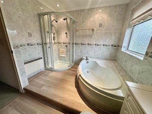 appointed kitchen offers ample storage and workspace. Enjoy seamless indoor-outdoor living with direct access from the kitchen to the expansive garden, perfect for al fresco dining and outdoor activities. The bungalow boasts three generous bedrooms, each offering a cozy retreat for family members. The family bathroom is tastefully designed, featuring modern fixtures and fittings.