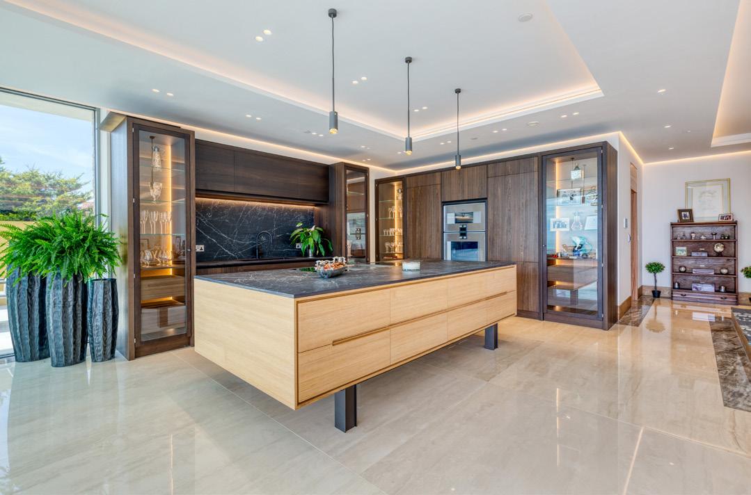 When a property is built from the ground up, it offers the ability to specify all the desirable household options, and the villa’s living and entertaining spaces are nothing short of spectacular. For the cinephile, there’s a climatecontrolled 12-seater cinema for the ultimate private screening experience. If you’re more into presses than popcorn, then the fully equipped home gym will allow you zero excuses for not having that Instagram fitness influencer physique. For wine connoisseurs, a 1,000-bottle climate-controlled wine room with a dedicated tasting foyer offers the perfect retreat. Yes, 1,000. Hopefully sufficient for most people’s requirements.