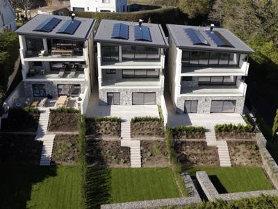 The property really is in an exceptional south-facing position on Mont Cambrai, with panoramic sea views of St Aubin’s Bay. The home has been designed to harness that all-day passage of the sun, with three floors of glassfronted living space, flanked by granite to give it a Jersey feel. The design allows practical use of the plot shape, funneling in natural light.
