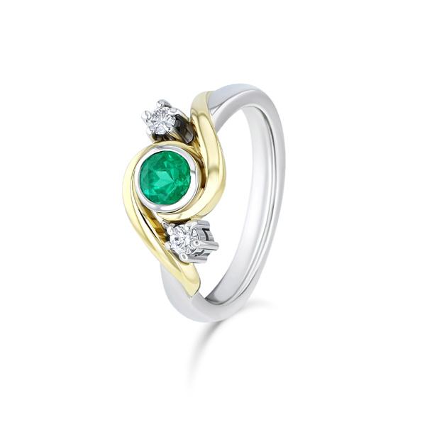 The Barcelona design has been beautifully handmade by our jewellers into a contemporary mixture of platinum and 18ct yellow gold. At the centre is a choice of either a gorgeous emerald or pink sapphire weighing approximately half a carat and complemented by brilliant cut diamonds to add that extra sparkle.