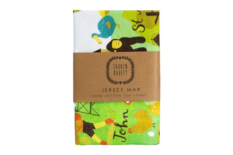 Towel featuring the original Lauren Radley illustration of her map of Jersey, also available in a British Garden Birds design, packaged, £10.00 Harbour Gallery.