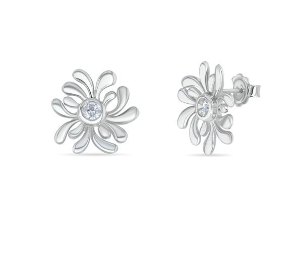 Crafted in beautiful silver our fleur design has wonderful shaping and also features a matching pendant, bangle and ring so you can complete the look. The stud earring design is set with a shining cubic zirconia to offer that extra sparkle too.