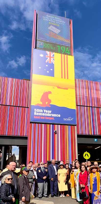 Frank Carbone, Deputy Mayor Dai Le and Councillors Kevin Lam and Kate Hoang unveiled a banner at Dutton Plaza marking 50 years since the end of the Vietnam War, and honouring the Australian troops who fought alongside South Vietnamese forces.