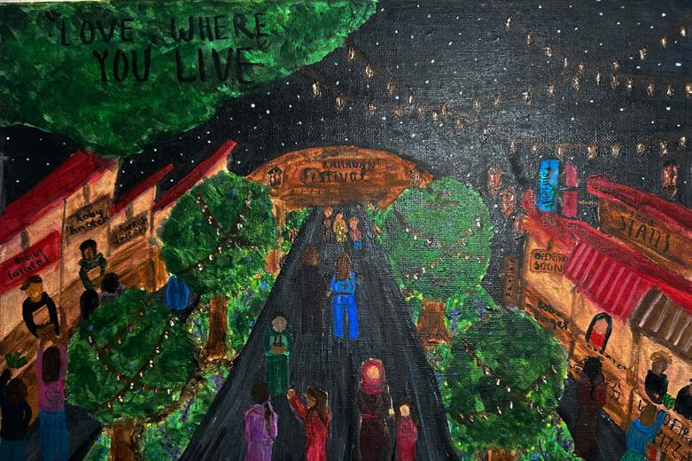 This painting show my appreciation for the unique cuisine found in Cabramatta. The food is amazing and the atmosphere is full of energy, just like the lovely city itself.