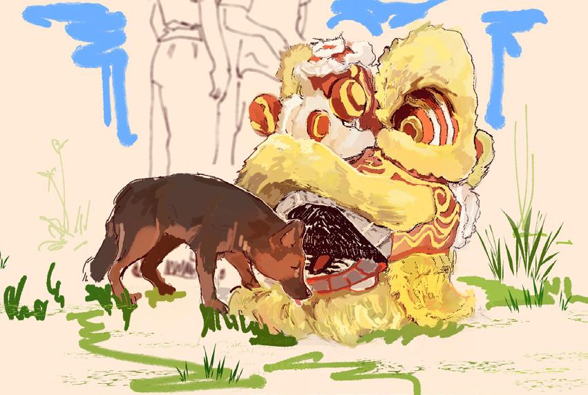 My painting is of a dog and a man at Cabravale Memorial Park. My mum and I go on walks daily, and we have made several friends at different areas of Cabramatta including this dog and man. In my painting, the dog’s name is ‘Oreo’, and I refer to the man as ‘Uncle’ in Vietnamese. This park has held my childhood memories, and as it has renovated, it has continued to serve as a place for sharing stories, sports, mindfulness, friendships and play. The park is an open book of stories.