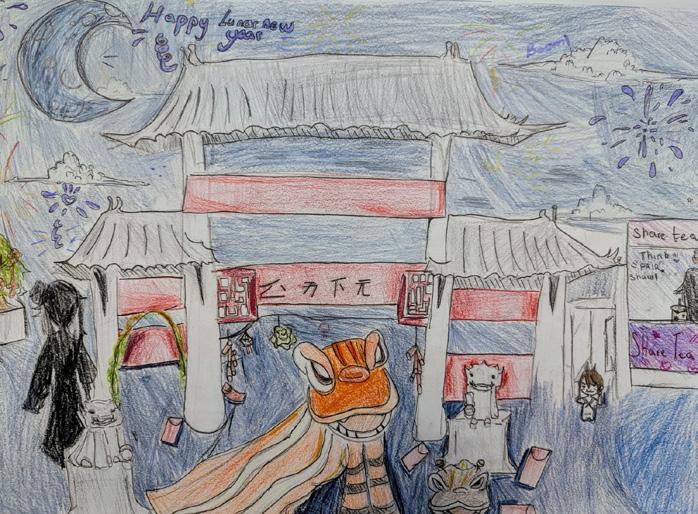 My art piece is created by pieces of paper with alcoholic markers, bamboo skewers and glue. It creates a 3D structure of the Moon Festivals held in Cabramatta. It expresses the busy environment and atmosphere in the Moon festival. It shows how much people love to come out of their homes and celebrate their culture and customs.